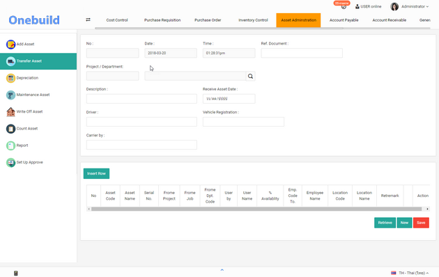 การจัดการระบบทรัพย์สิน ที่ใช้ในบริษัท และโครงการของคุณ ตั้งแต่การโอนย้ายสินทรัพย์ การขาย การคิดค่าเสื่อมสินทรัพย์ ทำให้รับรู้กำไรขาดทุนจากสินทรัพย์ทั้งหมดได้