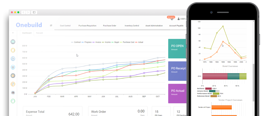 ระบบจัดการ ใบอนุมัติสั่งซื้อ วัสดุต่างๆ ภายในโครงการ ที่ผ่านการอนุมัติขอซื้อจากเอกสารใบขอสั่งซื้อ และยังเปรียบเทียบต้นทุนและวัสดุคงคลังโครงการ ก่อนทำการสั่งซื้อได้อีกด้วย