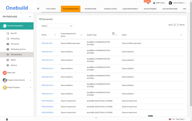 ระบบจัดการ ใบขอสั่งซื้อวัสดุ โครงการ หรือ ใบขออนุมัติสั่งซื้อ เพื่อให้แผนกและฝ่ายต่างๆ ทำเอกสาร Purchase Requisition (PR) ให้แก่ฝ่ายจัดซื้อทำเอกสารสั่งซื้อสินค้า