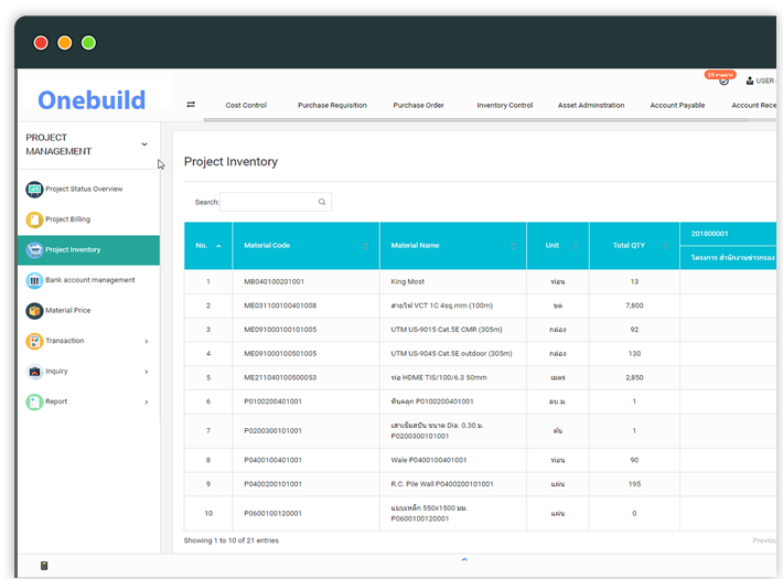 ระบบคลังวัสดุ ที่คอยควบคุมวจัดการัสดุ ของแต่ละโครงการ ให้อยู่ใน Budget ที่กำหนดไว้ ทำให้การจัดการวัสดุคงคลังโครงการต่างๆ ของคุณเป็นเรื่องง่ายๆ