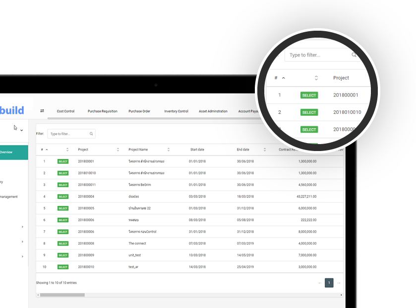 สร้างการเติบโตให้ยั่งยืน และขยายสเกลงานได้อย่างเต็มที่ เนื่องจากซอฟต์แวร์ของเรารองรับ ขนาดธุรกิจตั้งแต่ไซต์เล็ก ไปจนถึงไซต์ใหญ่ และรองรับการบริหารจัดการด้านงานรับเหมาก่อสร้างได้อย่างดีเยี่ยม